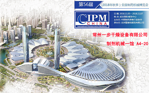 2018年11月5日-7日,第56屆2018年秋季全國(guó)制藥機(jī)械博覽會(huì),將在武漢國(guó)際博覽中心隆重舉行。常州一步展位號(hào):制劑機(jī)械一館 A4-20。