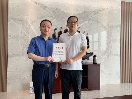 2021年8月18日,常州市天寧區(qū)政協(xié)主席魏敏到訪常州一步參觀考察,公司董事長查國才及政協(xié)委員查文浩陪同參觀。魏敏一行代表陜西旬陽縣仙河鎮(zhèn)中心幼兒園向常州一步頒發(fā)了捐贈證書。