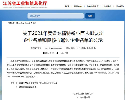 2021年12月17日,江蘇省工業(yè)和信息化廳公布了2021年度省專精特新小巨人擬定企業(yè)名單和復(fù)核擬通過企業(yè)名單,經(jīng)過企業(yè)申報(bào)、市縣審核推薦、形式審查、專家評(píng)審等程序,常州一步憑借穩(wěn)步的技術(shù)創(chuàng)新能力和市場(chǎng)表現(xiàn)成功入圍擬認(rèn)定企業(yè)名單。