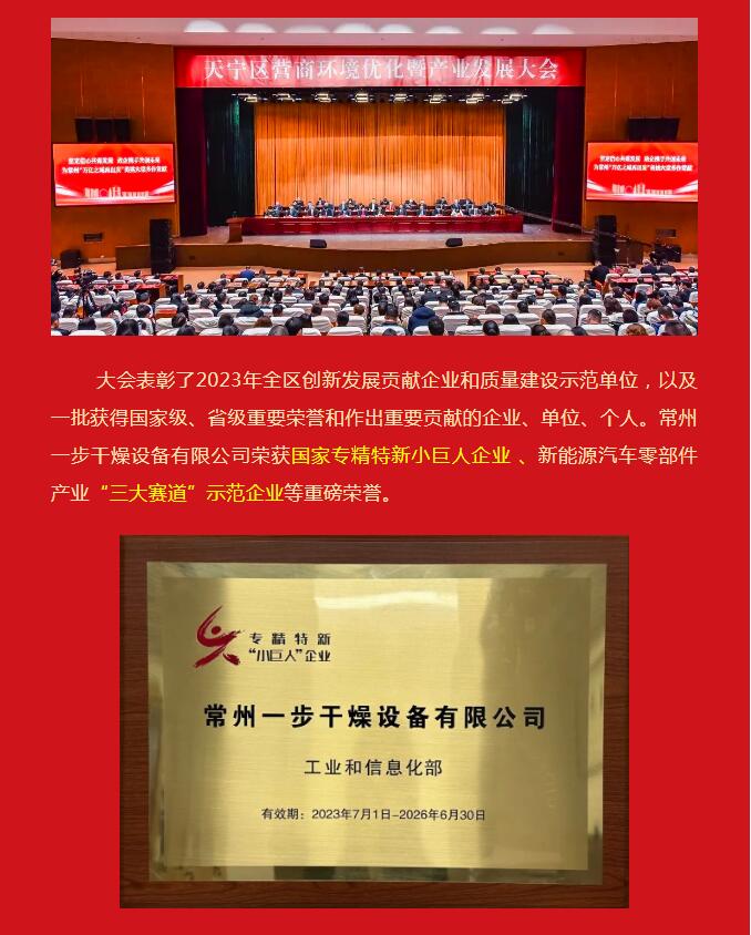 上一篇:一步干燥榮獲2023年度“創(chuàng)新突破獎”、“重大貢獻獎”等多項榮譽