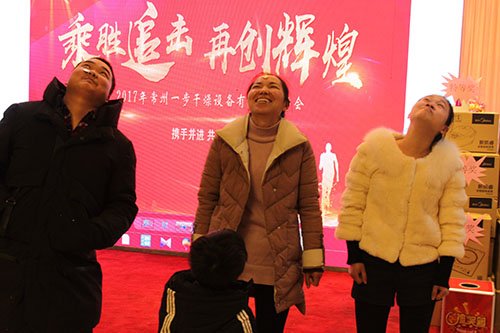 公司查總致開幕詞!他說:“二十年風(fēng)雨同舟,感恩有您!2017年是干燥行業(yè)市場競爭非常激烈的一年,同時也是公司穩(wěn)步發(fā)展的一年,更是各部門、各員工逐步成長的一年。大家工作中的勤奮、成功與挫折給公司留下了發(fā)展的足跡,大家辛勤的付出給公司留下了許多值得回味的精彩。所以,2017年,效率來自全體員工的激情,成績屬于全體員工的堅持和努力。在這里,我對大家的努力表示誠摯的謝意,他向全體員工表達了新春的祝福,特別為在外出差服務(wù)的員工送上熱切的關(guān)心和誠摯的問候!”