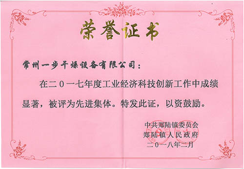 2018年3月6日,鄭陸鎮(zhèn)召開“重大項目增效年暨企業(yè)上云上市推進(jìn)會”。常州一步榮獲“國家標(biāo)準(zhǔn)制訂單位”及“首超1億元納稅銷售企業(yè)”兩項區(qū)級榮譽,并獲得了“工業(yè)經(jīng)濟(jì)科技創(chuàng)新獎”。