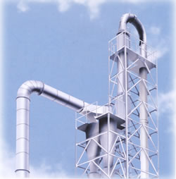 FG系列正負(fù)兩極氣流干燥機(jī)的工作原理是將濕物料的干燥分為兩步完成。原料先由二級干燥之尾氣和補(bǔ)充熱氣的混合體進(jìn)行一級正壓干燥,使用后的高溫低濕尾氣排出機(jī)外, 干燥后的半成品由新鮮的熱空氣進(jìn)行二級負(fù)壓干燥。