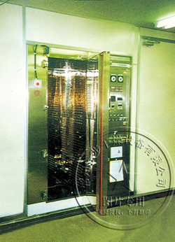 JCT系列藥品專用烘箱由風(fēng)機(jī)將一部分新鮮空氣經(jīng)初、中高三效過(guò)濾,達(dá)到十萬(wàn)級(jí)凈化,經(jīng)蒸發(fā)熱交換器,使空所升溫至一定溫度,通過(guò)過(guò)濾熱空氣凈化后,再由左側(cè)分流板至各層,使熱風(fēng)平均通過(guò)每層被干燥的物料。濕空氣從烘盤底下的傾斜風(fēng)道抽出后經(jīng)離心風(fēng)機(jī)使一部分濕空氣排出…