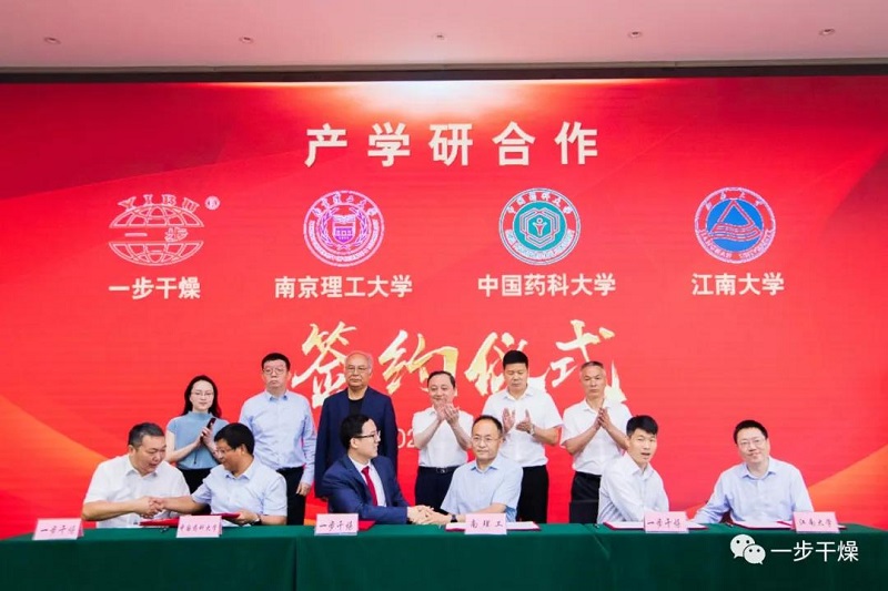 ★ 接下來(lái)舉行了本次儀式的第二項(xiàng)議程:常州一步干燥設(shè)備有限公司與南京理工大學(xué)、中國(guó)藥科大學(xué),江南大學(xué)進(jìn)行產(chǎn)學(xué)研合作簽約。天寧區(qū)政協(xié)主席魏敏先生、鄭陸鎮(zhèn)黨委書記李漢田先生、鄭陸鎮(zhèn)鎮(zhèn)長(zhǎng)郁國(guó)興先生、中國(guó)制藥裝備行業(yè)協(xié)會(huì)理事長(zhǎng)高川先生、中國(guó)干燥行業(yè)協(xié)會(huì)理事長(zhǎng)史勇春先生、天寧區(qū)工商聯(lián)黨組書記韋偉女士也上臺(tái)見(jiàn)證了這樣一個(gè)激動(dòng)人心的時(shí)刻,全場(chǎng)嘉賓用熱烈的掌聲預(yù)祝項(xiàng)目合作取得圓滿成功,期待雙方的合作將會(huì)全面實(shí)現(xiàn)雙贏的結(jié)果。